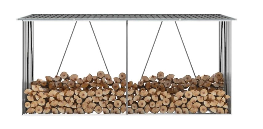 Zahradní kůlna na dříví z pozinkové oceli 330x84x152 cm šedá