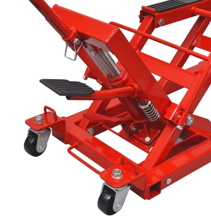 Hydraulický zvedák na motorku je spolehlivý pomocník pro zvedání motorek, čtyřkolek, traktorů a dalších menších vozidel v garážích i autodílnách. Díky jednoduchému ovládání, nízké hmotnosti a snadné přenosnosti vám umožní provádět údržbu i výměnu příslušenství bezpečněji a efektivněji.