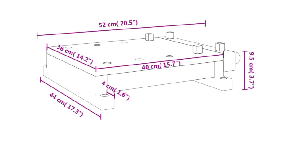 Rozměry horní desky: 40 × 36 × 5,5 cm (D × Š × T)