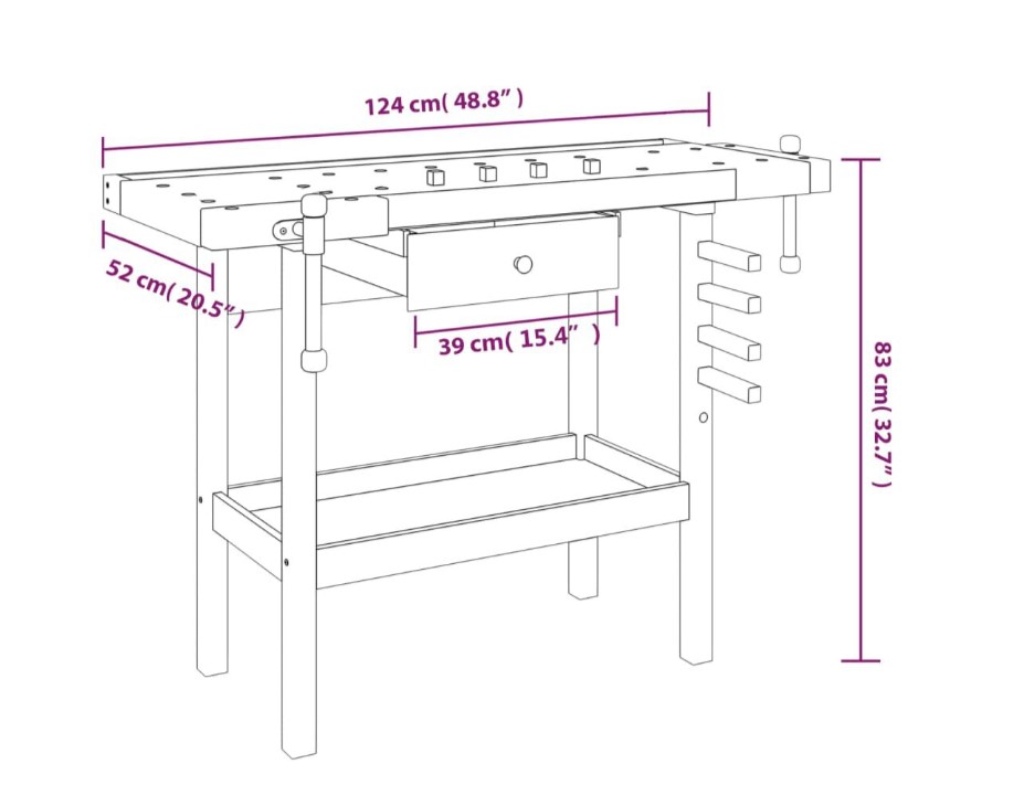 Tento dřevěný pracovní stůl je díky pevnému a stabilnímu rámu ideální pro práci v garáži, dílně nebo kůlně.
