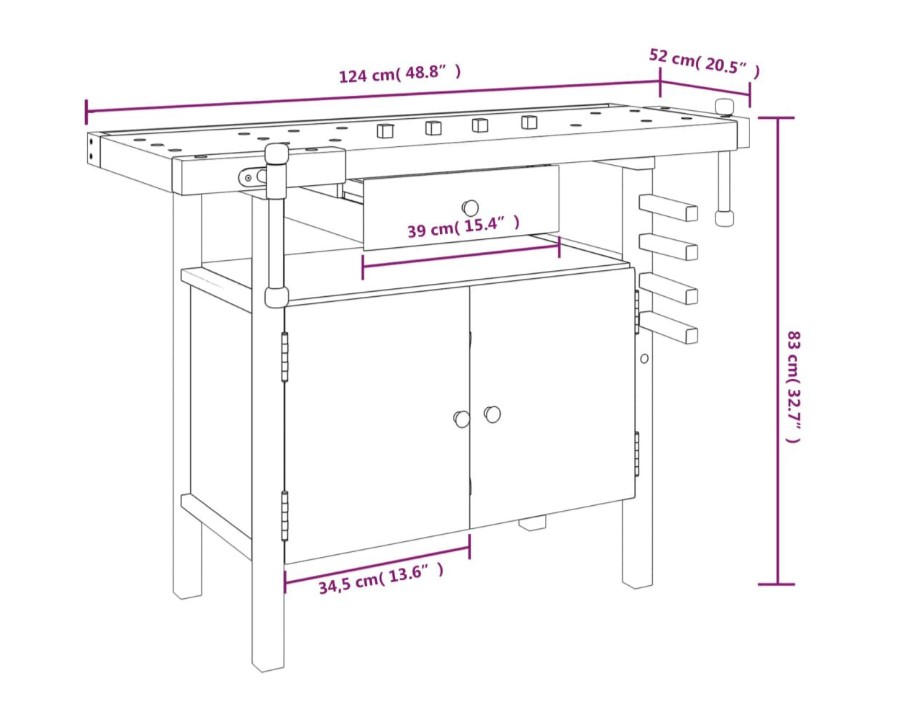 Dostatek úložného prostoru: Pracovní stanice nabízí zásuvku a přihrádku s dvířky, díky čemuž budete mít nářadí přehledně uspořádané a vždy po ruce.