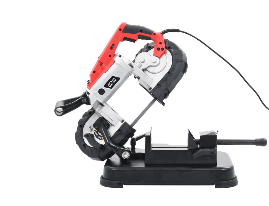 Kompaktní a univerzální pásová pila s robustní kovovou základnou je ideální volbou pro přesné a efektivní řezání široké škály materiálů.