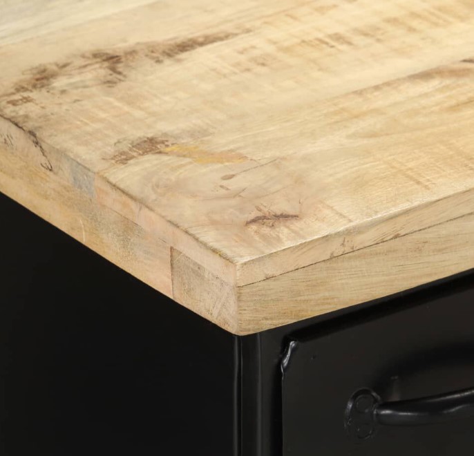 Materiál: masivní hrubé mangovníkové dřevo s přírodním povrchem, práškově lakovaná ocel