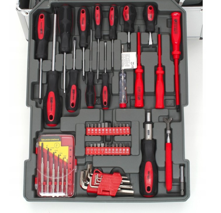 Robustnost, spolehlivost a ergonomie: Sada obsahuje několik vyjímatelných kazet a nabízí kompletní výbavu pro domácí dílnu, automobilovou opravu i profesionální použití. Obsahuje: